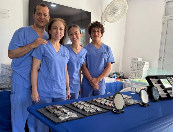 Una vez el equipo llega, usamos tecnología de punta para obtener refracciones automatizadas que van a ser revisadas por el oftalmólogo. Luego nuestro equipo de óptica ensambla los lentes pre-cortados en las monturas y se examina el paciente de nuevo. Todo esto se realiza en una misma cita sin costo para el paciente.
